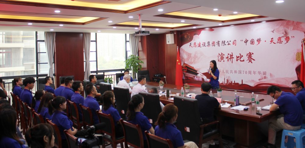 9月27日下午,天恩建設(shè)集團(tuán)有限公司舉辦了“中國夢(mèng)·天恩夢(mèng)”主題演講比賽。本次活動(dòng)旨在慶祝中華人民共和國70周年華誕,唱響愛國主旋律,培植理想信念,深耕企業(yè)文化,展現(xiàn)天恩風(fēng)采。特邀潛江市資深專家、學(xué)者擔(dān)任評(píng)委,公司領(lǐng)導(dǎo)和全體員工參與了此次活動(dòng)。