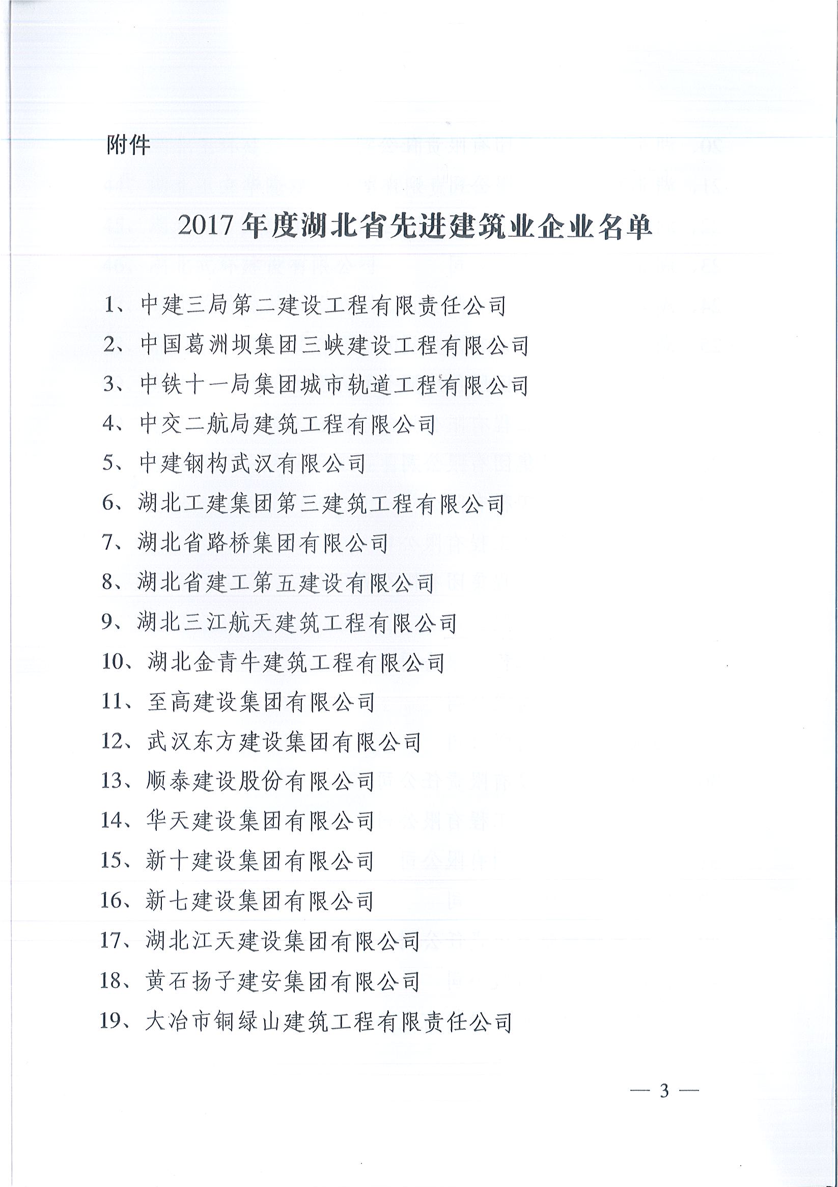 關于表彰2017年度湖北省先進建筑業企業的決定