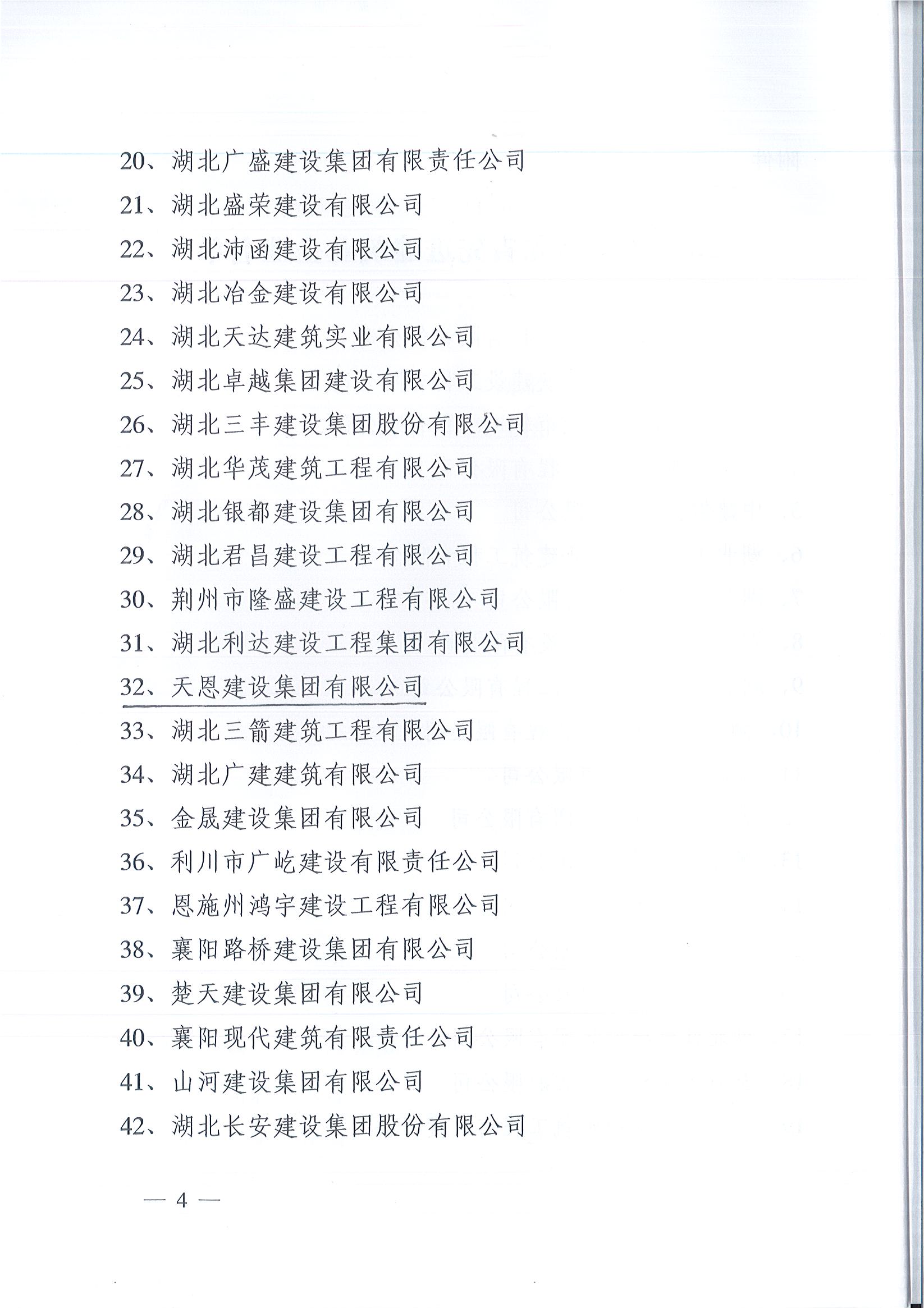 為了推動建筑業持續、健康地發展,提高行業整體水平,為了樹立典型,激勵行業先進,總結和推廣先進經驗、發揮優勢,讓建筑業企業有更大的發展,經會員單位申報,市(州)建筑業協會和企業主管部門推薦,省專家評審委員會評審,同意中建三局第二建設工程有限責任公司等52家企業為2017年度湖北省先進建筑業企業,現予以表彰。希望獲獎的企業再接再勵,再創佳績,為湖北省建筑企業高質量發展再立新功。