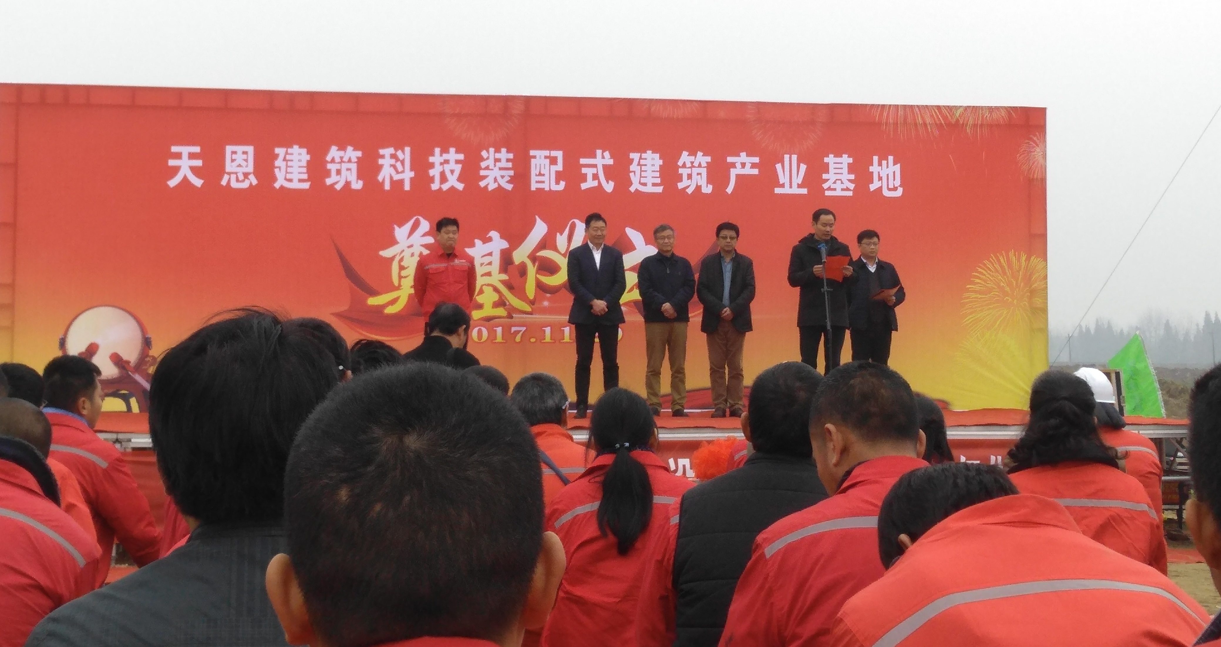 天恩建筑科技裝配式建筑產(chǎn)業(yè)基地奠基儀式于2017年11月29日上午9時(shí)58分隆重開(kāi)幕